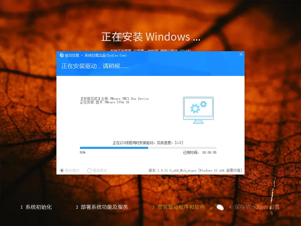 驱动安装情况进入桌面 · 首次开机驱动安装情况
